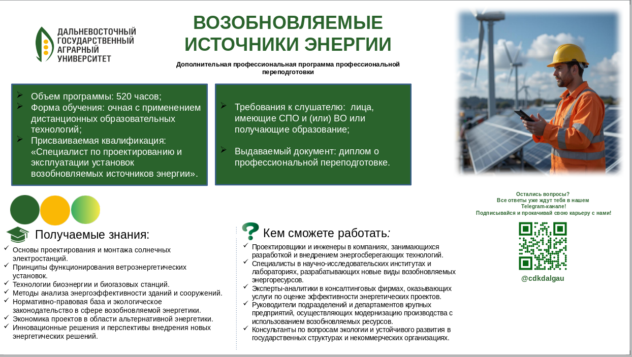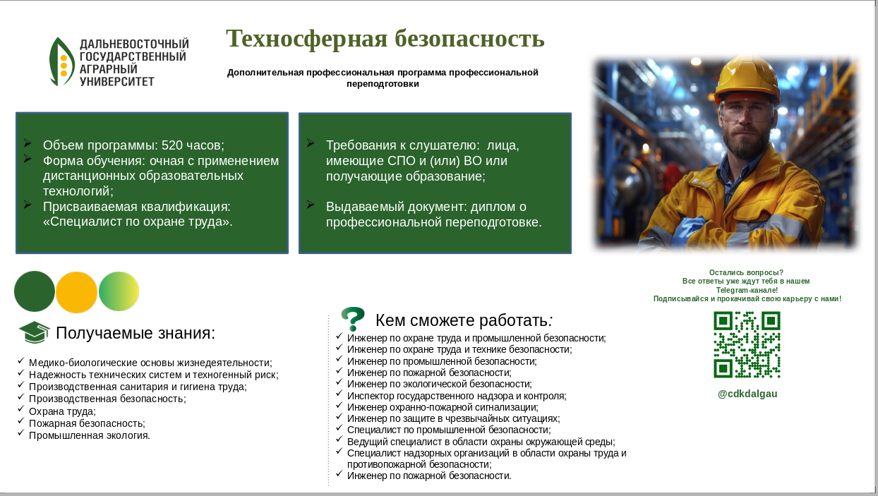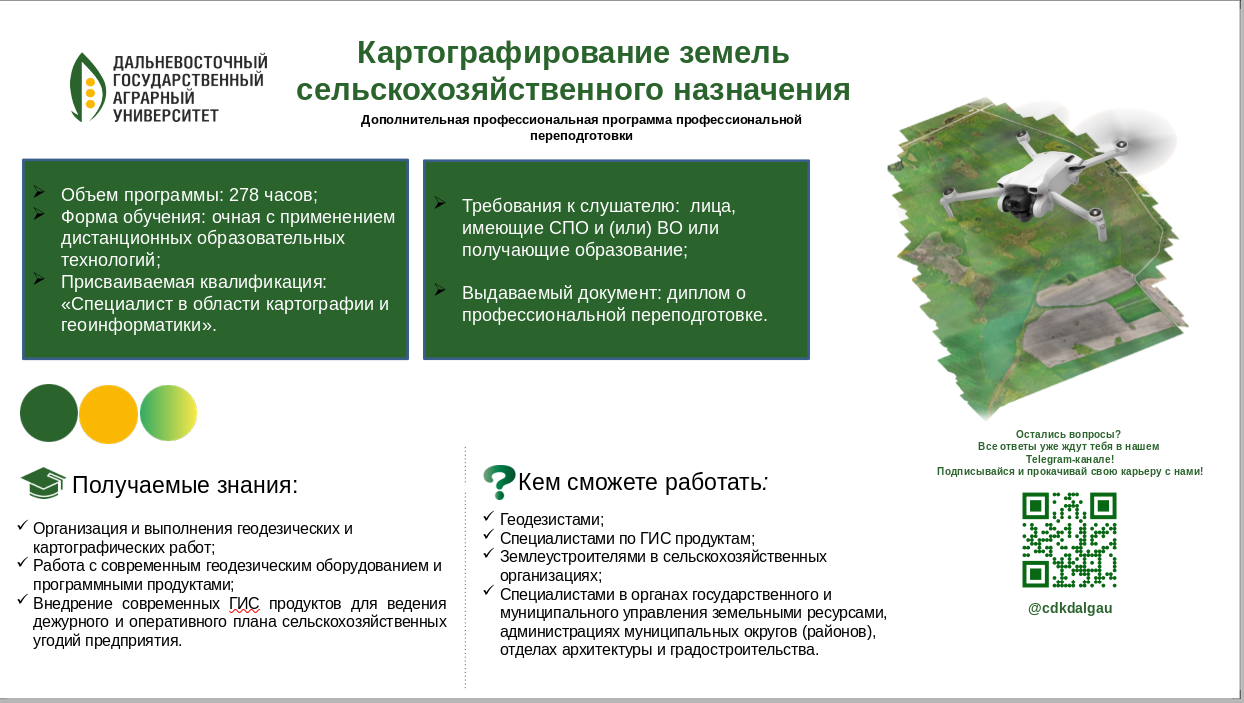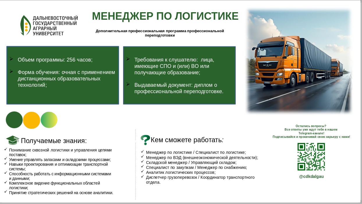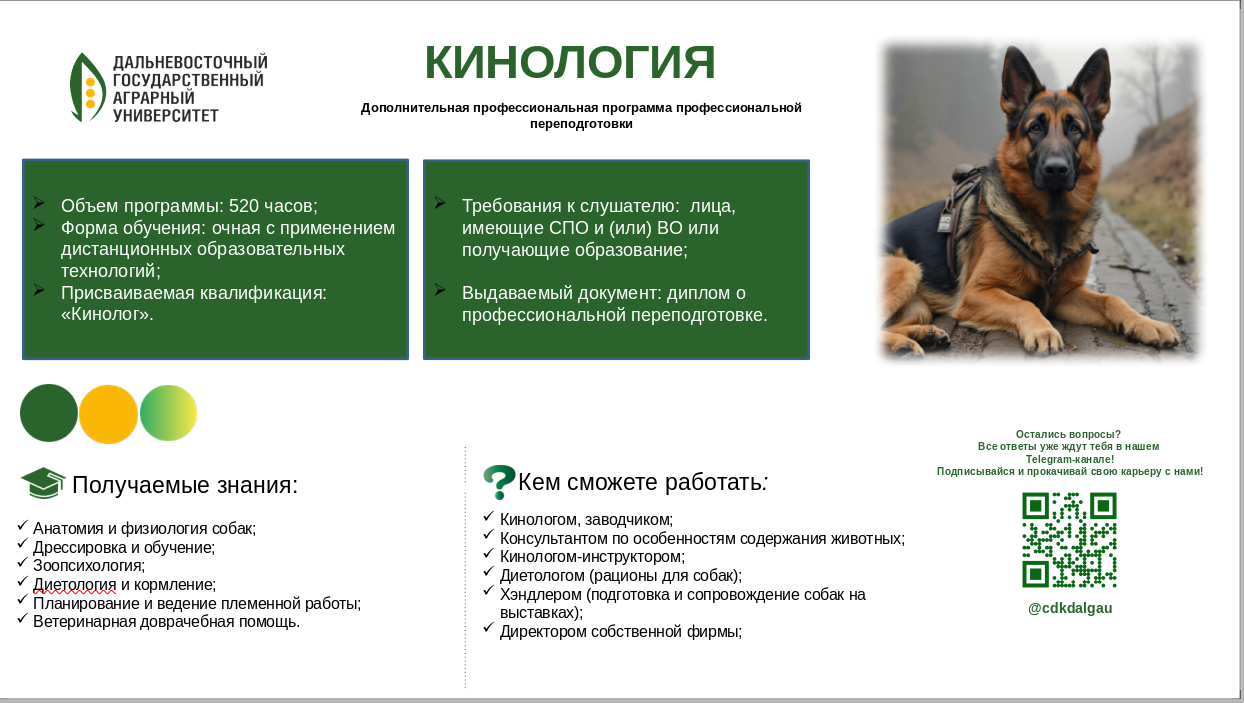 Появились вопросы? Все ответы уже ждут тебя в нашем Telegram-канале! @cdkdalgau Подписывайся и прокачивай свою карьеру с нами!