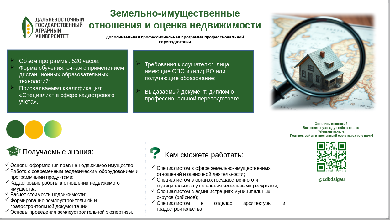 Земельно-имущественные отношения и оценка недвижимостиДоступно мест: 5Записано обучающихся: 20 Стоимость